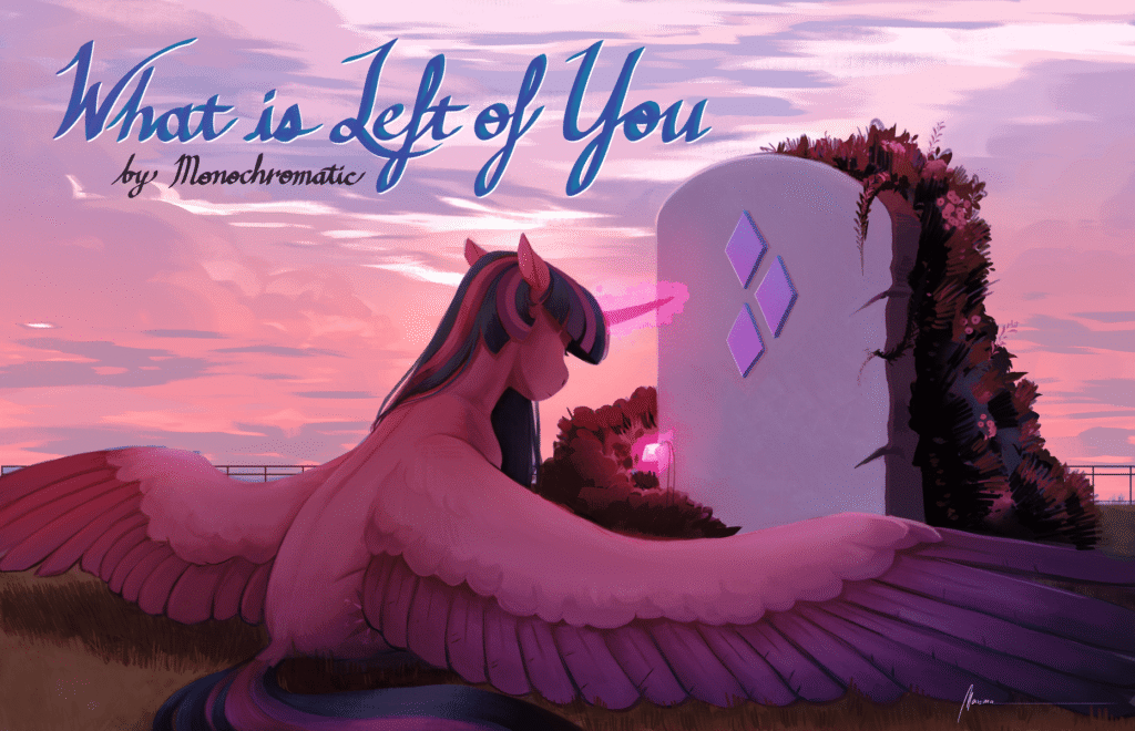 “Summersong and Twilight,” he replied, quietly. He brushed his hoof against the barrier, which emitted a low thrum in reply. “I like to think they can both hear, and—” He turned to look at her, and in twin silver eyes she saw love like she’d seen once upon a time in twin violet eyes. “There’s some things I want to run through them first before I say them to you.”